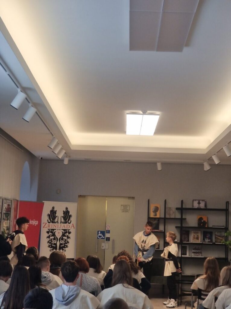 Uz to, učenici su imali priliku posjetiti i izložbu U početku bijaše kraljevstvo… postavljenu povodom 1100. obljetnice Hrvatskoga kraljevstva. Zrinijada se ove godine izvrsno na to nadovezala, a dijelom i odvijala u prostoru povijesne izložbe. Više o Zrinijadi – https://www.hismus.hr/hr/novosti/aktualno/dogadanje/jubilarna-v-zrinijada-u-galeriji-klovicevi-dvori/